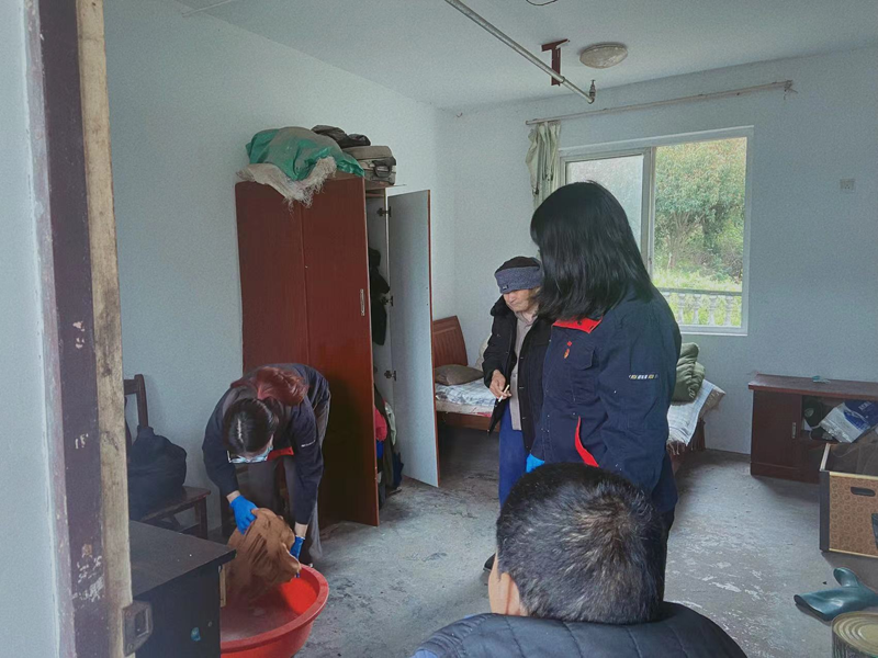 為行動(dòng)不便的老人清洗衣物,使老人們感受到親人般的溫暖和關(guān)愛(ài)。