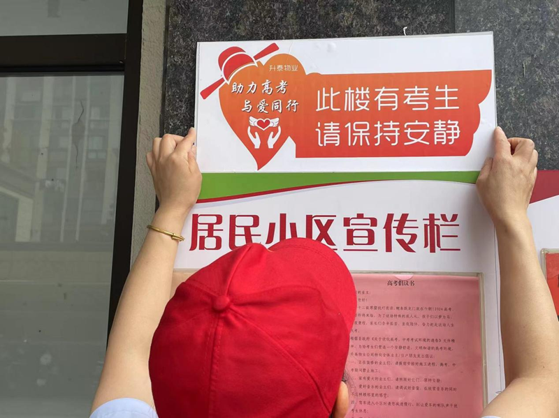 又到一年高考季,為給廣大高考學(xué)子營(yíng)造安靜舒適的學(xué)習休息環(huán)境,升泰物業(yè)黨支部組織“五心紅色志愿者”隊伍,組成臨時(shí)“護航高考小隊”,聚焦考生及家長(cháng)急難愁盼問(wèn)題,優(yōu)化服務(wù)舉措,全力做讓考生和家長(cháng)放心的“大后方”,以實(shí)際行動(dòng)為高考保駕護航。