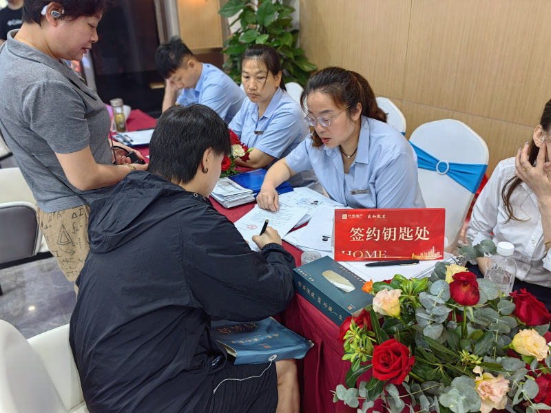 交付當日,工作人員整裝待發(fā),熱情洋溢地迎接業(yè)主歸家。從來(lái)訪(fǎng)接待、資料核驗、物業(yè)辦理、入戶(hù)驗房等各個(gè)環(huán)節,工作人員貼心為業(yè)主提供服務(wù),讓每位業(yè)主真切體會(huì )到歸家的溫暖。